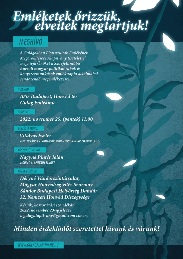 MEGHÍVÓ – Szovjetunióba hurcolt magyar politikai rabok és kényszermunkások emléknapja